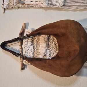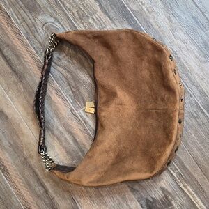 Absolutely Gorgeous & Good Pre-Loved Condition Donald J Pliner Brown Suede Braided Leather Handle Studded Hobo Bag