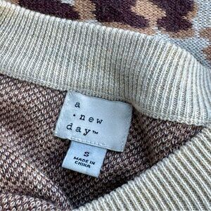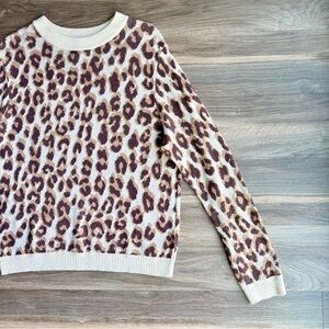 A New Day Leopard Print Relaxed Fit Pullover Crewneck Knit Sweater Size Small