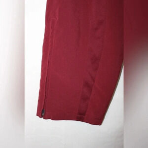Men’s New Balance Lined Ankle Zip Track Pants Size XL. These are in a burgundy red color way with a mesh linking inside the pants. These zip on the outer lowers legs about 12” up. These have side zipper pockets and a drawstring waist band. These are in good used condition with no flaws.