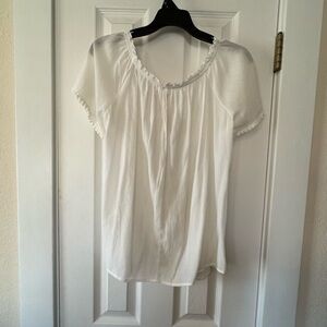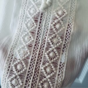 White Boho Peasant Blouse w/ Lace Embroidery Sheer XL Cottage