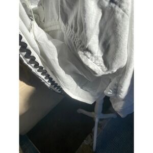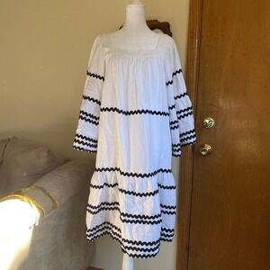 Lisa Marie Fernandez for Target white linen blend midi dress features a striking black ric-rac trim throughout.