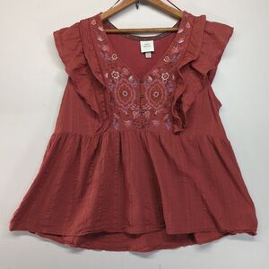 Knox Rose Embroidered Blouse Med Flutter Floral Ruffle Top Work Career Drape XXL