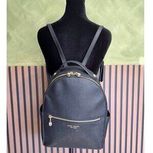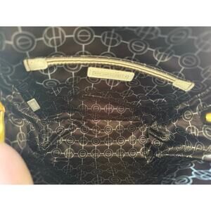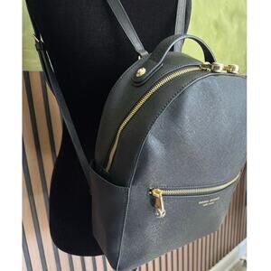 Henri Bendel West 57th Backpack Leather Round Bag Adjustable Straps Black Gold