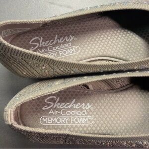 SKECHERS Cleo 2.0 Glitzy Daze Womens 8 Shoes Taupe Knit Rhinestone Pearl Flat