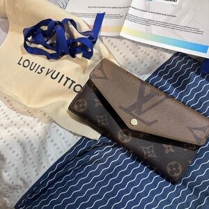 Authentic (microchipped) Louis Vuitton Sarah reverse monogram wallet. Beautiful condition with box dust bag and papers.