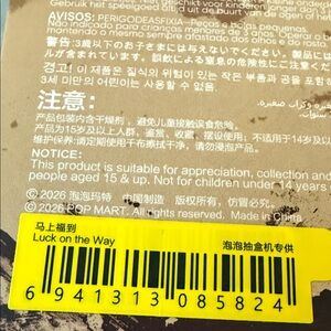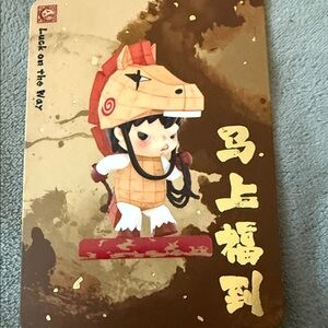 Hirono “ Luck on your side “ Figurine and a stamp. This is in celebrating Year of the horse 2026. Will discontinue. box featuring Asian calligraphy and artistic design. Stamp attaches on the bottom of the figure and has a super cute design. Authentic by Popmart.