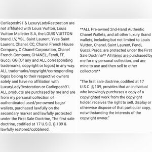 @Carlieposh91 & LuxuryLadyRestoration have no affiliation with this designer luxury brand, any brand or corresponding logos/copyrights. All items are from my personal collection & have been successfully authenticated, & COA retained, prior to posting