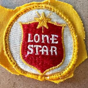 This specific shield and starburst logo is a favorite among collectors of vintage beer advertising and Texas history. Because this is a genuine "cut-off" patch rather than a modern reproduction, it carries more value for those looking to restore vintage trucker hats or work jackets.