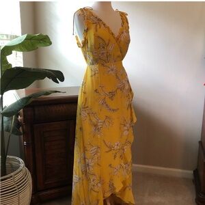 ❤️Gorgeous Lulus Ruffle Bow Tie Sleeves Ruffle Floral Yellow Maxi Dress