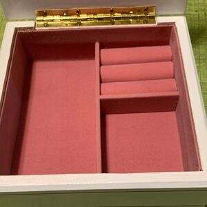 Chic jewelry box with a white exterior and soft pink interior. Ideal for organizing your accessories.