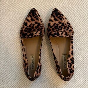 Good condition slightly used Steve Madden leopard print pointed toe loafer flats in size 6.5