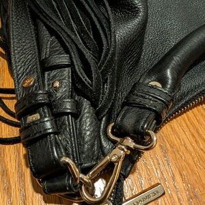 DANIER Black Pebbled Leather Fringe Hobo Bag - Boho Chic