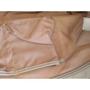 Nine West White Double handle Tote Cream Buckle Accents Pebbled Vegan Leather
