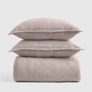Meet your new favorite coverlet and sham set. We started with premium, organic long staple cotton that is masterfully woven into two layers to create a beautifully textured and quilted look. We then added a special pre-wash to create the softest hand feel. This set is ideal for all temperatures and the perfect layering piece to any bed. And here’s something that feels even better: this bedding is produced from organic cotton and finished without the use of harsh chemicals or pesticides. Investing in practices that are good for you and the planet means you can rest a little easier.