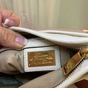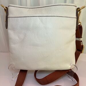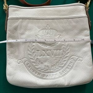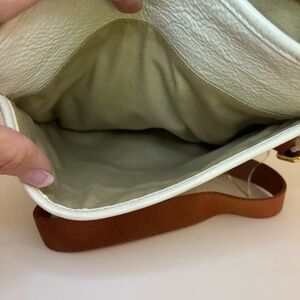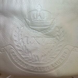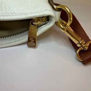 Stylish Ralph Lauren messenger bag. White body with tan strap. Perfect for everyday use.