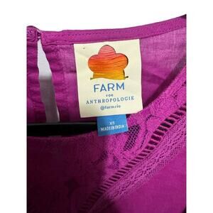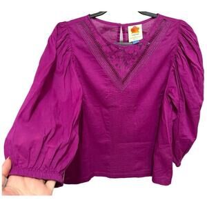 Farm Rio Kelsie Blouse Peasant Puff Sleeves Lace Detail Pullover Purple Size XS