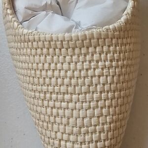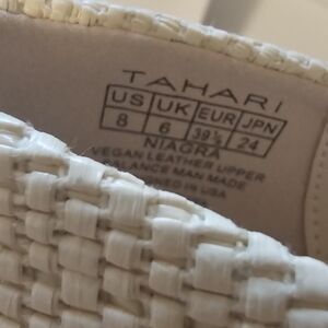 Chic Tahari 3.5" heels with a woven textured design. Vegan leather has a cushioned footbed with a pointed toe. Ideal for elevating any outfit. Ivory color. NIB. Smoke Free Home.
