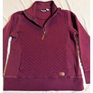 L.L. Bean Womens Quilted Quarter Zip Pullover Sweatshirt Burgundy XS Petite