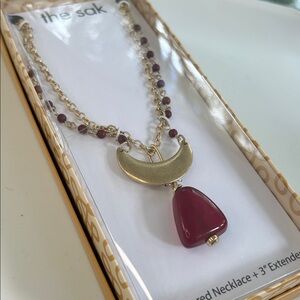 The Sak Gold Tone and Burgundy Beaded Layered Necklace NWT