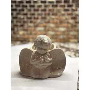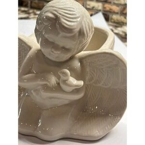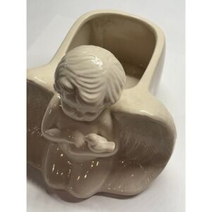 Angel Kneeling Cherub with Bird Planter suitable for Succulents Trinkets or even a Sponge. Very sweet. No chips or cracks but the is a small mark on one knee from production. Please see photos.