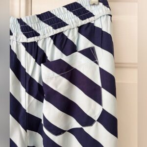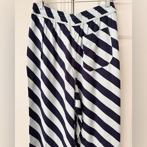 Slightly oversized this adorable pants offer flattering fit, diagonal stripes pattern, elasticized waistband, front slant pockets and back welt pocket!
