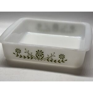 VINTAGE GLASBAKE Green Daisy Days Flower Blossom Milk Glass Dishes (Lot of 2)