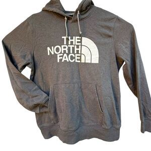 The North Face Gray Half Dome Hoodie Sweatshirt White Logo TNF Size L Pullover