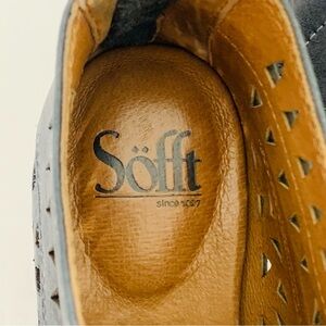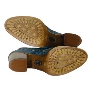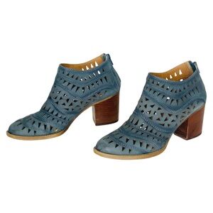 Sofft Westwood II Laser-Cut Ankle Boots Denim Blue Suede Upper Chunky Heels Sz 8