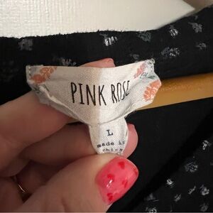 Pink Rose Black Floral Pointelle Button Down Shirt L