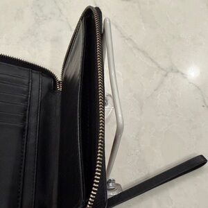 Elegant wallet with a bold snake pattern. Features a sleek design and secure zip closure.