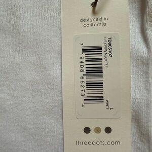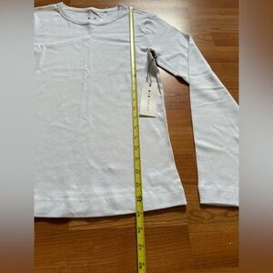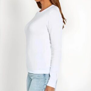 Three Dots Women Sz L Solid White Long Sleeve Top Cotton Round Neck Pullover New