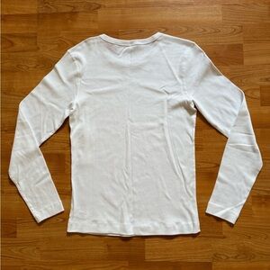 Elevate your wardrobe with this classic white long sleeve top. Perfect for any occasion, it offers both comfort and style.