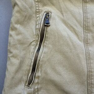 This vintage Xios NY Plaid Lined Barn Chore Bomber Jacket is a stylish and functional addition to any wardrobe. Made from durable cotton with a canvas fabric type, this jacket features a corduroy collar and cuffs for added flair. With a full zip closure, lined interior, and spacious cargo pockets, it is perfect for travel, casual outings, or workwear. The jacket's hipster, barn, and outdoorsman themes make it a versatile piece for the fall and winter seasons. Made by American Eagle Outfitters, this jacket is of high quality and is machine washable for easy care. Please note that pull tab on zipper is missing but can be easily replaced.