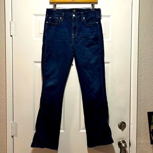 7 For all Mankind DOJO dark blue jeans with a flattering flare. Cute “7” on both back pockets.