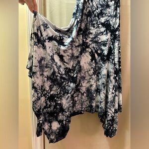 Torrid Size 1 Black White & Grey Tie Dye Swing Dress Handkerchief Hem
