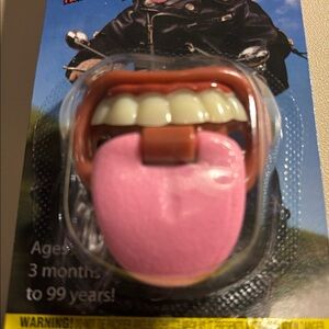 Quirky baby pacifier featuring a playful design. Adds humor to any outfit.