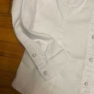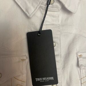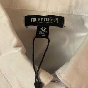 True Religion Western White Shirt Jacket W/Pearl Snaps Denim Stretch Size XL