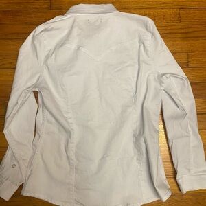 Crisp white shirt with button-up front. Features chest pockets and a classic collar.