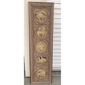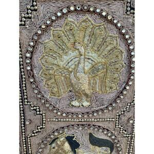 Vtg Burmese Thai Kalaga Tapestry Wall Art Elephant Peacock Lion Beaded 54” Large