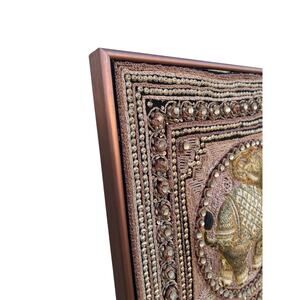 kalaga tapestry, Burmese wall hanging, Thai embroidered art, Mandalay textile, Southeast Asian décor, elephant peacock wall art, chinthe guardian lion, gold velvet embroidery, beaded framed art