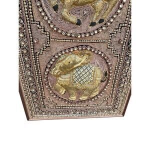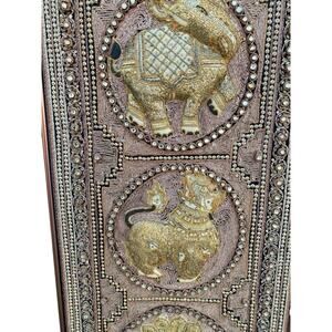Vtg Burmese Thai Kalaga Tapestry Wall Art Elephants Peacock Lions Beaded Velvet