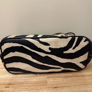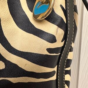 Dooney & Bourke Stylish zebra print design. Black and tan colors. Perfect for any outfit. Durable and fashionable.