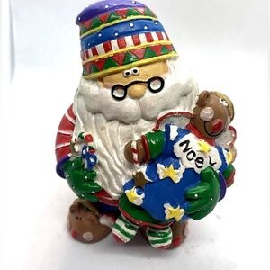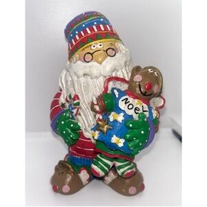 Vintage Whimsical Santa Figurine Resin 90s Colorful Gingerbread Christmas Décor