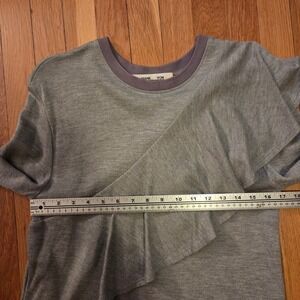 Diane von Furstenberg DVF Gray Ruffled Asymmetrical Crew Neck Sweatshirt Sz S