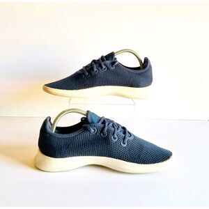 Great pair of women's Allbirds Tree Runners in dark blue with white soles.