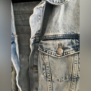 Classic button front denim jacket in light wash. Perfect layering piece for spring and fall. Great casual everyday staple.