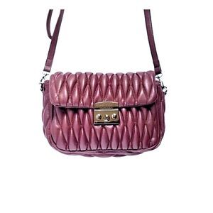 BADGLEY MISCHKA Burgundy Mini Quilted Messenger Bag Vegan Leather Plum