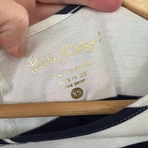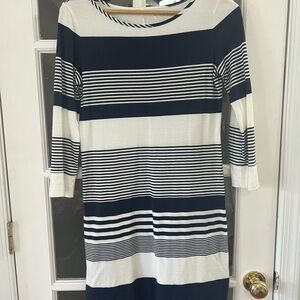 Lilly Pulitzer Marlowe Dress Blue White Striped Pima Cotton - size XS - 3/4 Sleeves - excellent pre owned condition