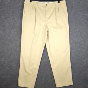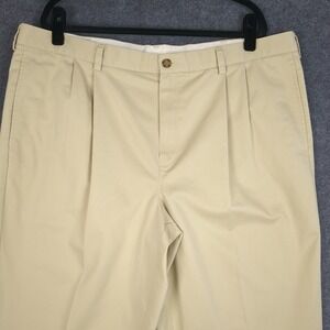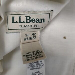 LL Bean Classic Fit Pleated Chinos Mens 42x32 Khaki Tan Cotton Pants