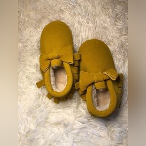 Adorable yellow kids shoes with a charming bow design. Perfect for adding a pop of color to any outfit.